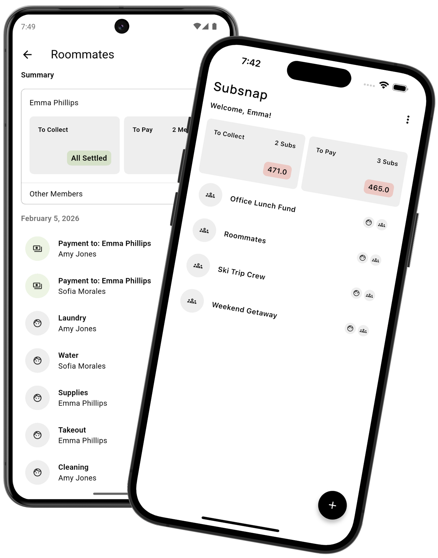 Log expenses, set shares, and let Subsnap handle the math.